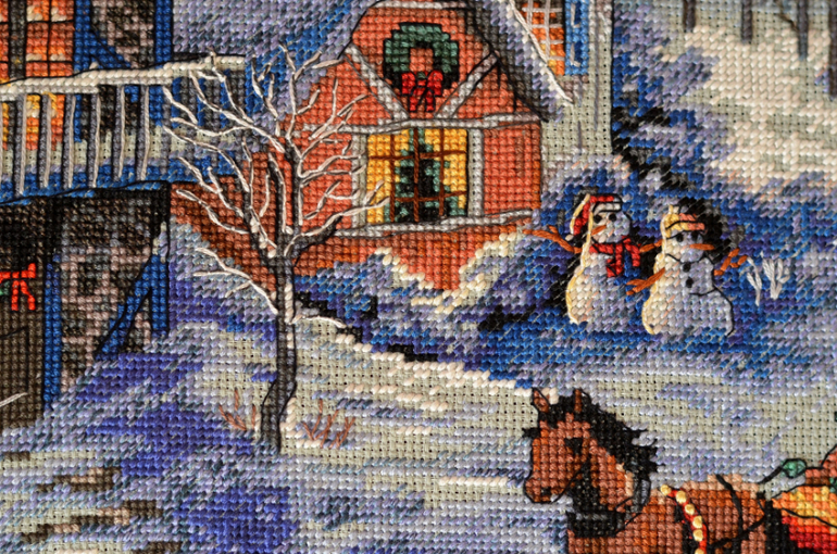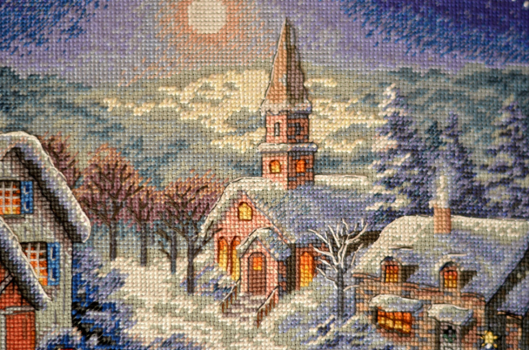 Очень много ниток осталось с других наборов этой фирмы. Вот после этого новогоднего осталось много ниточек. Докупала ДМС. Результатом довольна)