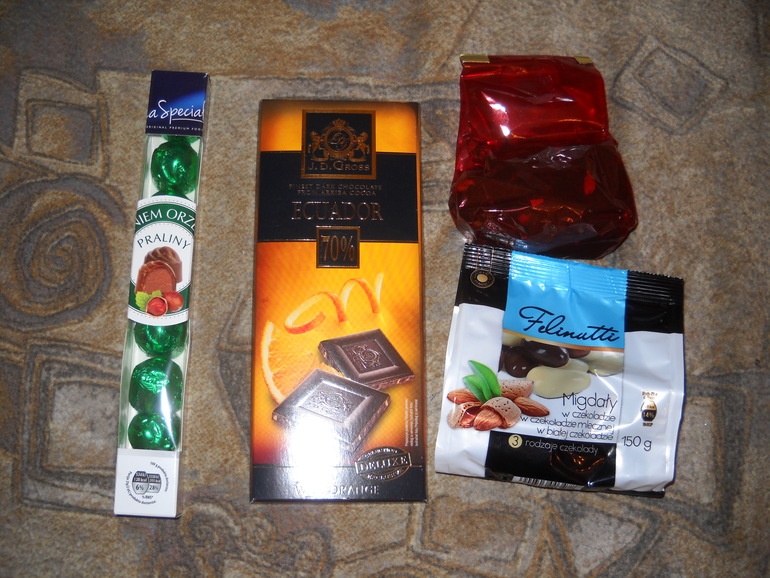 А это вкусняшки для человеков)))) Чаёк на днях опробуем и будем пить из моих новых чашек))) Миндаль я очень люблю и люблю всякие драже. И хоть зубы ни к черту, я, таки, как бабушка, передними зубками разжевываю))))) Конфетки даже жалко распечатывать))) А тёмный шоколад я ем ИСКЛЮЧИТЕЛЬНО апельсиновый))) И как ты угадала?