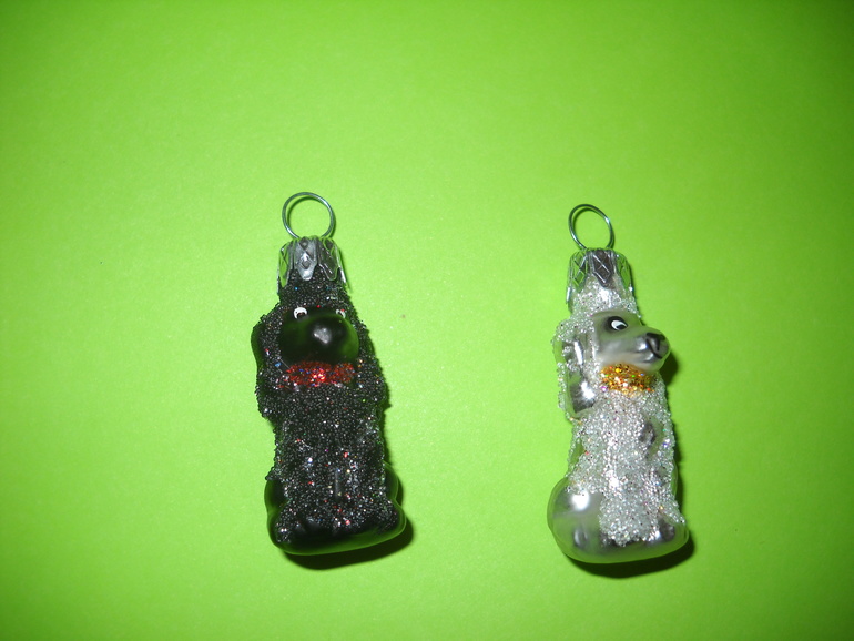 Когда я развернула очередной сверточек и увидела содержимое я пищала от восторга))))) Это же пудели!!! И, что интересно, я когда уходила сегодня в гости, то попрощалась с Зоськой а когда подходила к дому подруги увидела на прогулке еще одного карликового пуделя, только белого))) А тут в свёртке два пуделя: чёрный и белый! Клааасс!.... Я в этом году маленькую ёлочку поставила на стол, т.ч. днём повешу этих красавцев на неё))) Спасиб!