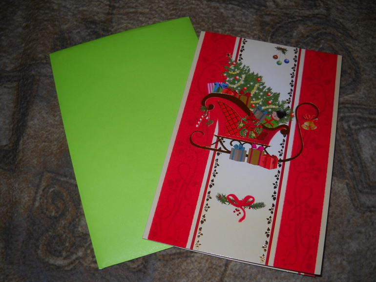 А эта красивенная (местами даже бархатная!) открытка содержитв себе очень тёплые слова и пожелания всему моему семейству))) Я прочитала маме в 4 утра, когда домой вернулась и мама шлёт ответные пожелания и приветы))) И подарки твои ей все очень понравились))) А сколько будет восторгов со стороны племяшек! Спасибо тебе огромное за бурю позитивных эмоций!!!!