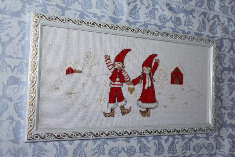 "Новогодние гномы". Вышивала на продажу, надеясь, что кто-нибудь купить на подарок перед Нг. Так и вышло