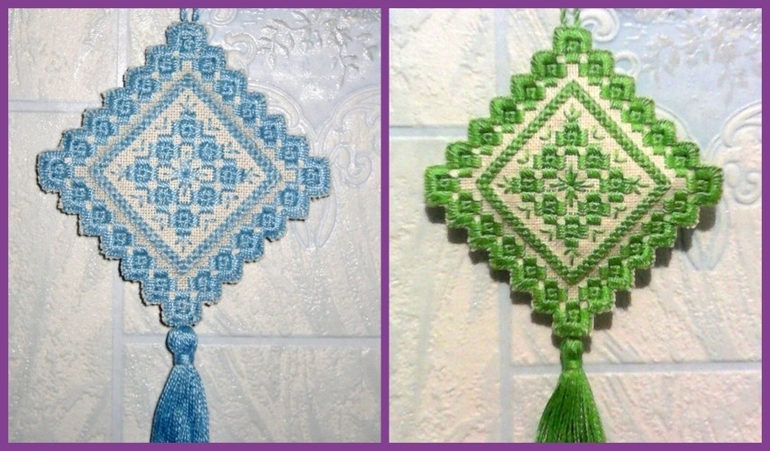 Три подушечки в технике хардангер так же от Риолис (одну сфотографировать не успела)