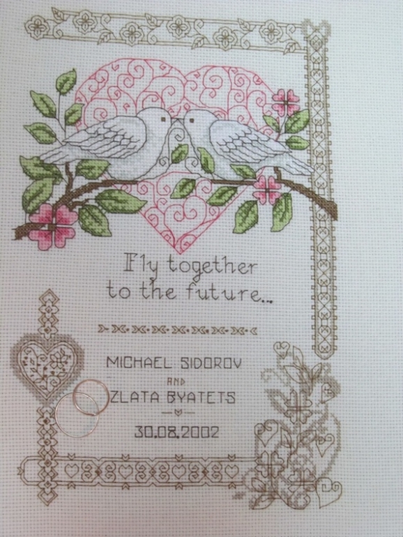 8. что там...забыла...а...начался парусник от ДИМ..но он пока продложается...а я сделала метрику нам с мужем, что бы не совсем сапожник без сапог))