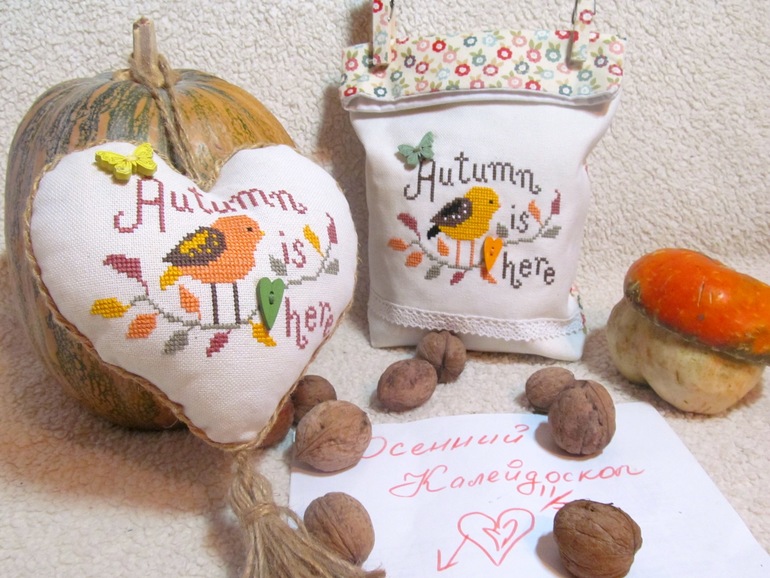 12. Участвовала в конкурсе))) Для прикладной вышивки - сердце пахучее с карицей и мешочек для орешков с пищепочками)))
