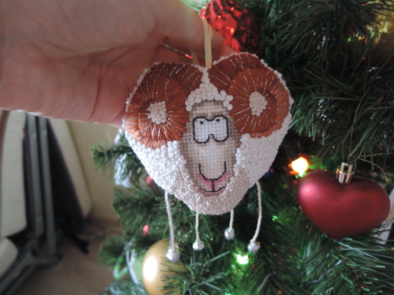 8. Осенью начала готовиться к НГ и была вышита работа по схеме Милл Хилл с большим количеством бисера, пуговок и всяких интересных деталей