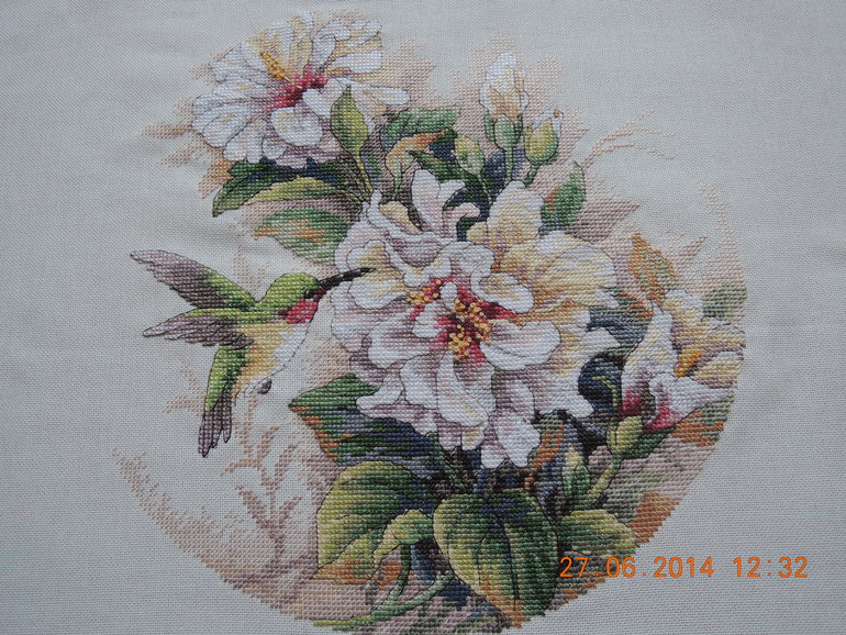 7. Летом с большим удовольствием вышила набор от Дим - Колибри и гибискус