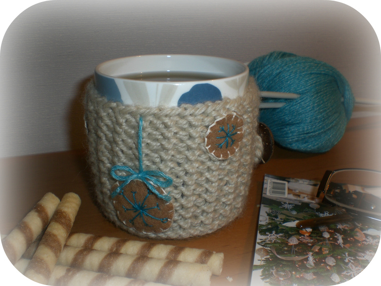 14. Я связала свитерок для чашки ))) Ну и конечно , там есть вышитые снежинки )))))