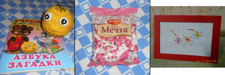 28. К сожалению, одна участница не выложила отчет о полученной посылочке, поэтому есть фото только рукодельной части подарка от отправителя, слово урок
