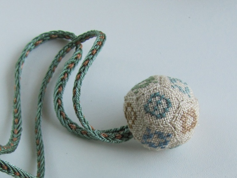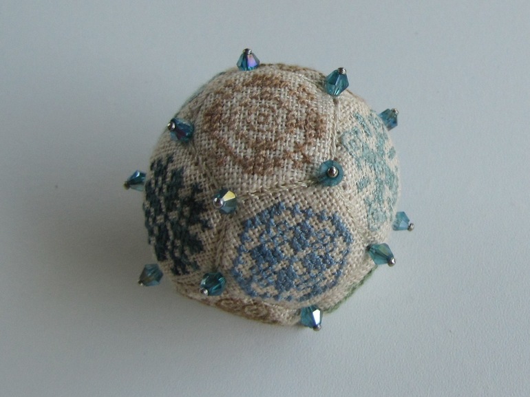 Мячик игольница с песком из ракушек внутри, и бобинки оригами