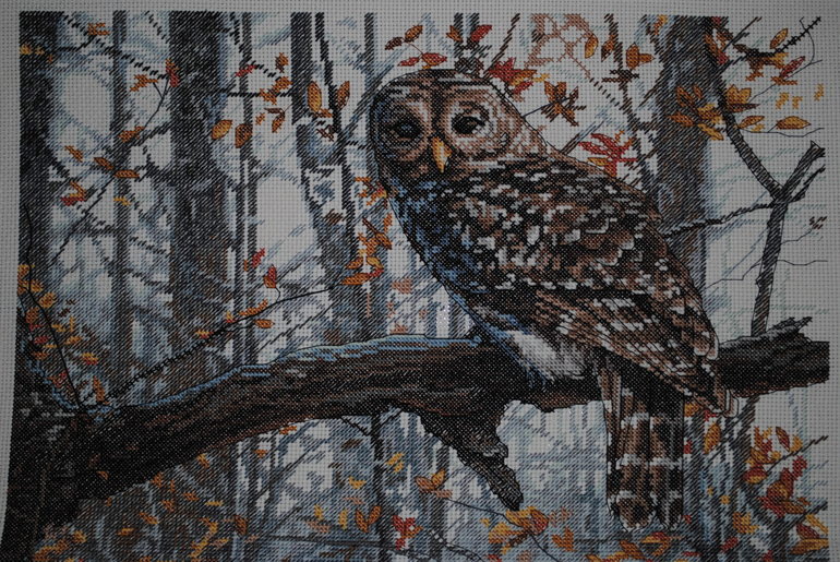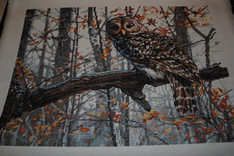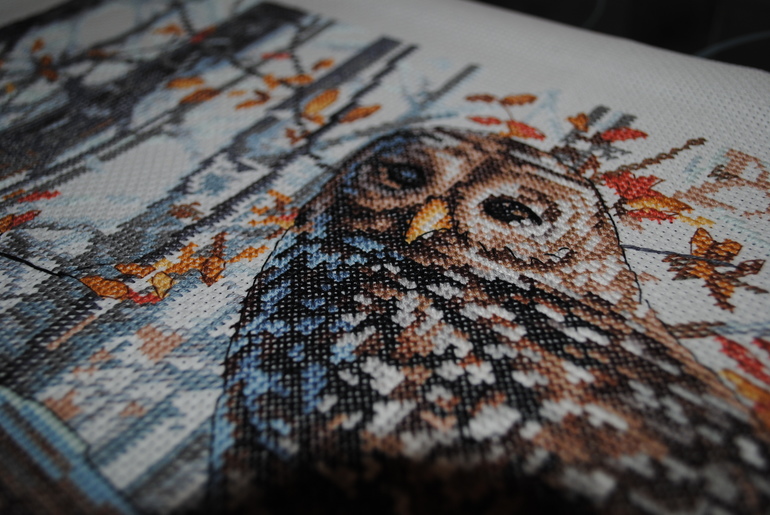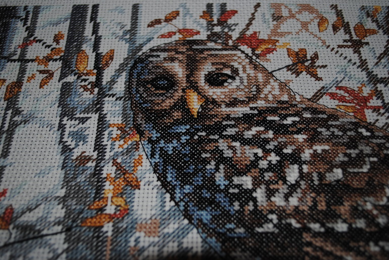 красавица совушка! у меня такая же лежит, ждет своего часа. долго вышивали? легко идет работа?