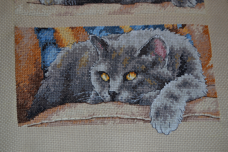 Сама такая же, вышивала в марта, ужас! Второго кота за ноябрьские праздники вышила. + вышиваю когда муж на вахту уезжает...