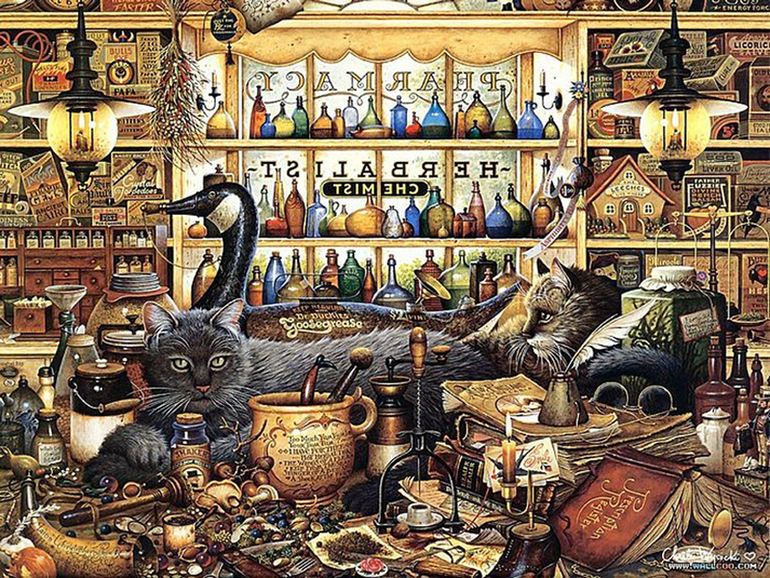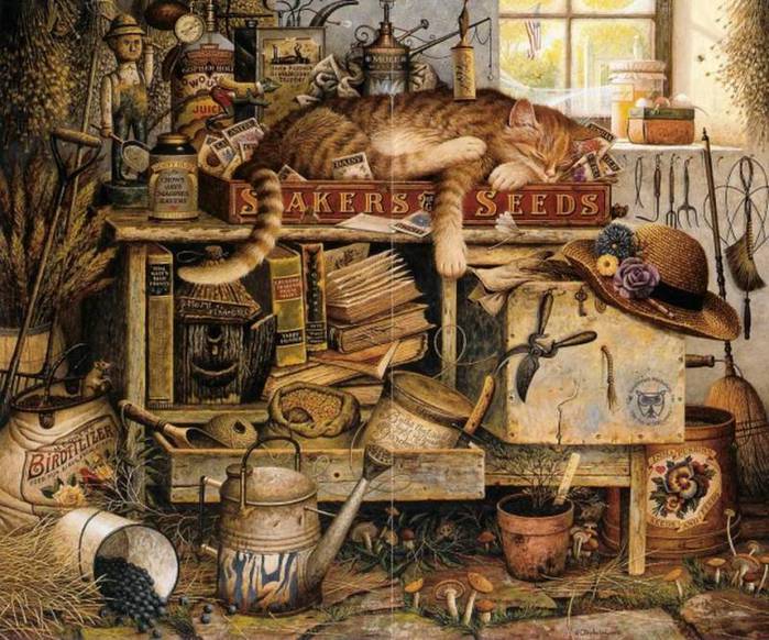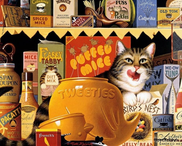 а как вам этот помощник хозяйке? только это другой художник Geoffrey Tristram. По его картинам у Дима есть кот Леонардо и кот со скрипкой. Но о нем другой пост если интересно)