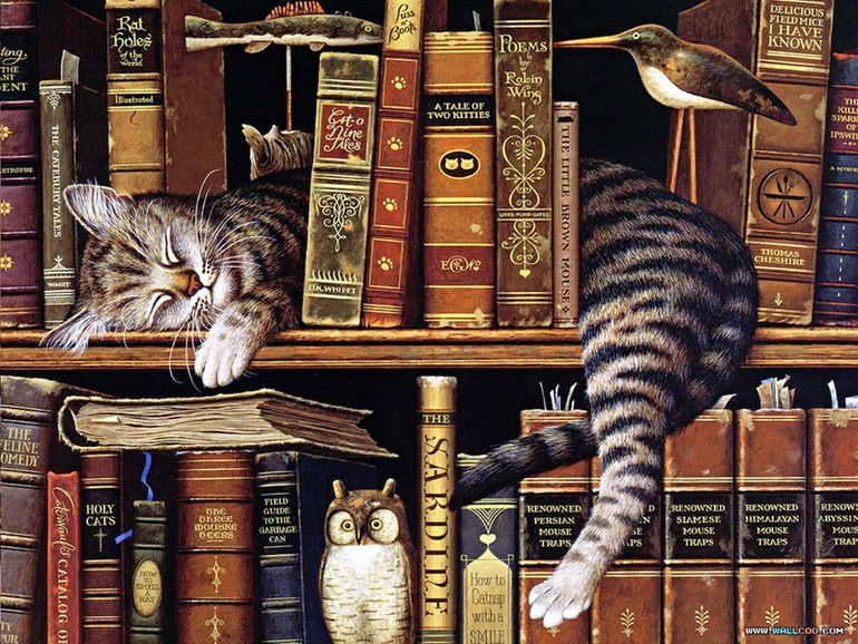 А про Фредерика мне знакомая тоже написала)) вот не вчитывалась в книжки, а это очень интересная библиотека - котячья: Сказка о двух котах, Известные сиамские мышиные ловушки, Известные персидские мышиные ловушки, Руководство по мусорному баку, Святые коты, Котовая комедия и т.д. Вот такой юмор скрыт в картинах Чарльза Высоцкого))