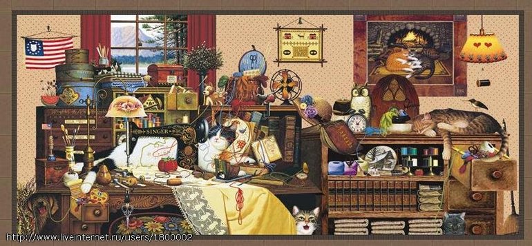 Позже, когда я увлеклась вышивкой - в наборах Дименшенс я увидела несколько схем по картинам этого художника...и вот теперь потихоньку их собираю. Недавно отдавали схему с образцами ниток на кота Фредерика, но мне схема с образцами не досталась..я немного огорчилась, ну не сильно конечно..не судьба так не судьба...но! мне пришло письмо от девочки получившей схему Фредерика))) Мне предлагали его отдать!))) Новая владелица схемы...почитала мой дневник, посмотрела мои работы...и решила, что он мне нужней!)))