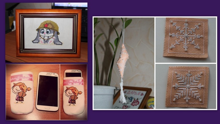 Fiume впервые сделала сама коллаж)) И не зря! Ведь теперь мы можем полюбоваться и на её чудесные вышивки. Птички, сердечки, рукавички... все это замечательные украшения интерьера! Не останавливайся на достигнутом!