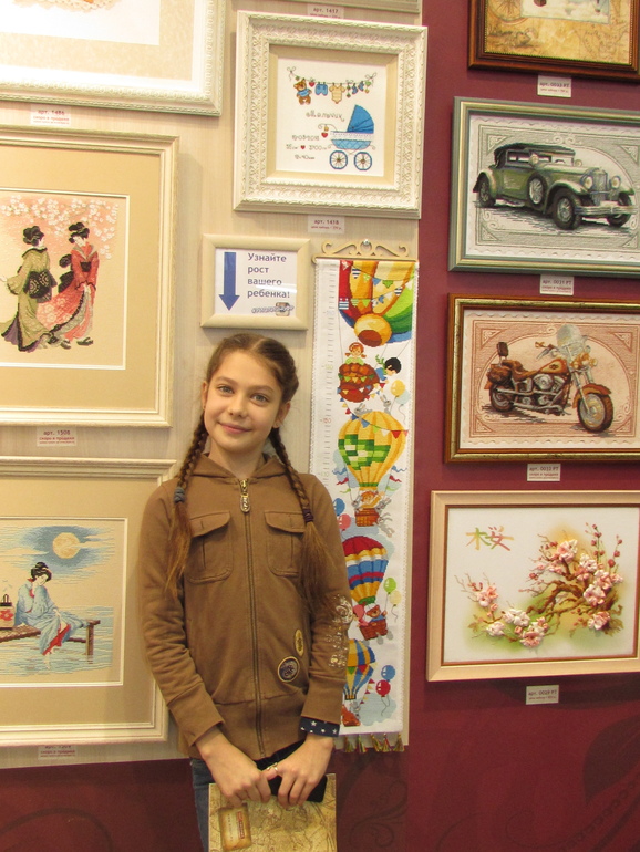 это мы у стенда Риолис. это новинки — вышивка на тонированной канве. то есть вышивается машина, а под еще всякие детальки уже на самой канве нарисованы. на выставке по 800-900р стоят,в магазинах говорят будут дороже( там еще такая серия с городами, может видели Париж, Рим, НьюЙорк..