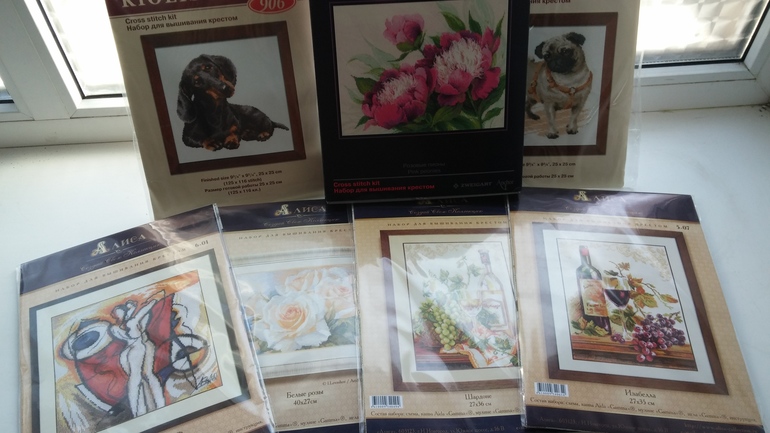 Разглядываю их, трогаю, щупаю ниточки, схемки...красиво как, прелесть!!! Так всё хочу домой, уже и работа-не работа...вышивать-вышивать-вышивать!!!
