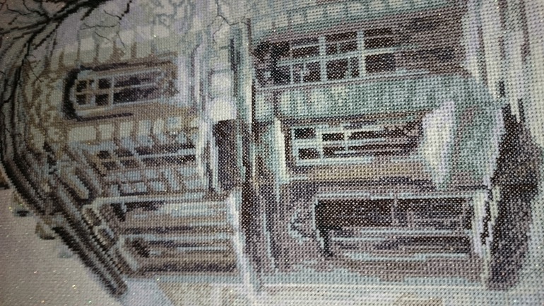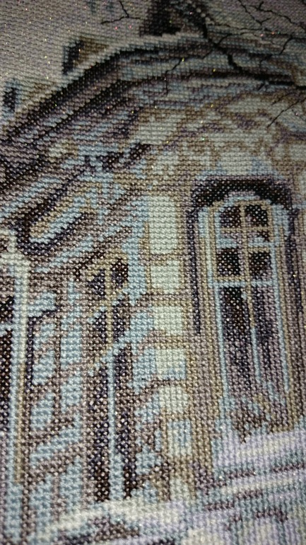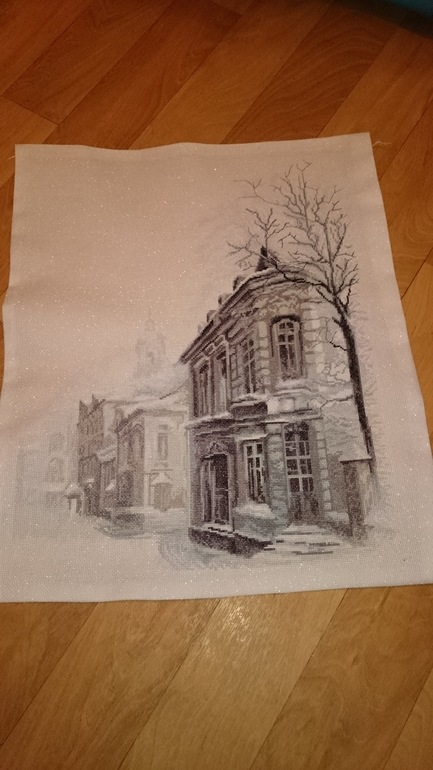 Так похоже на мой район, где я живу))) Канва с блеском это в наборе была?