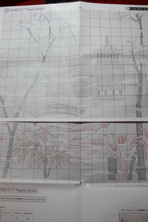 Схема в 2 частях и с2хсторон: на первых двух листах мы видим схему, переворачиваем страницы и видим схемы вышивания бэка и т.д.