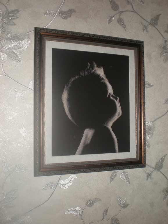 Сейчас думаю что надо было заказать антибликовое стекло, а то с обычным да ещё и на чёрной канве смотрю на картину как в зеркало.