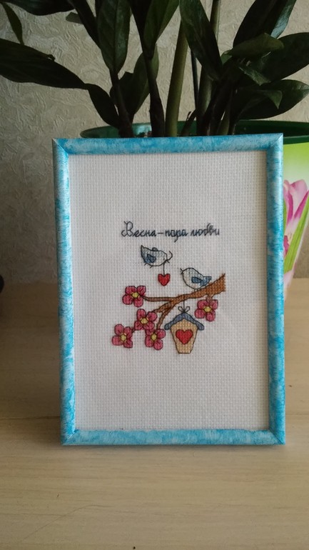 6. Снегирь от Риолис, схема из Инета, нитки самоподбор на глаз, рамка какая выпала из шкафа, сезонная вышивка, стоит на работе (я решила на работе ставить вышивки по временам года)