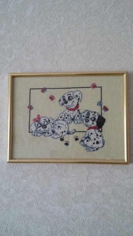 12. Далматинцы, схема из инета, нитки на глаз, рамка - какая выпала из шкафа