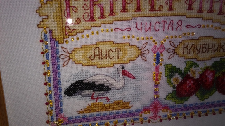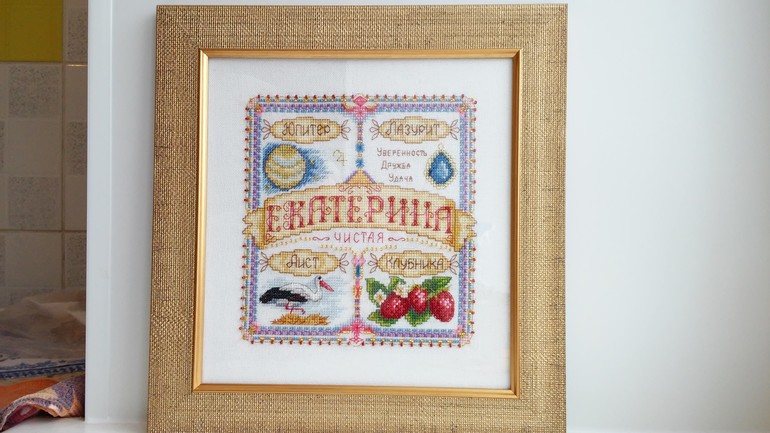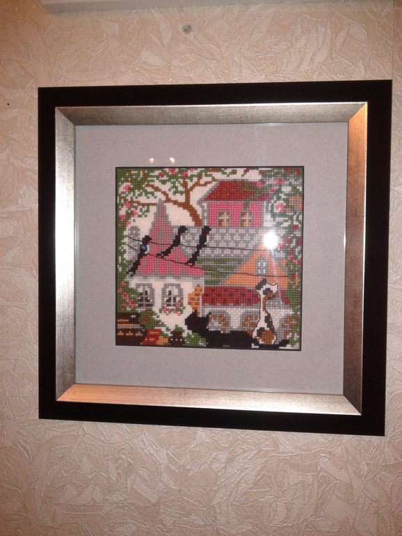 висит на работе , т.к. рамка не вписывается в интерьер (фото только нашла домашнее), еще в планах вышить "Лето в городе", но не знаю дойдут ли руки.