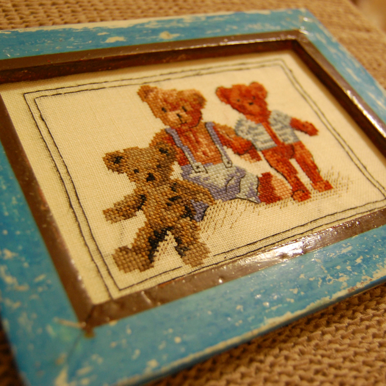 Мне мишка без глазика немного жутковатый для меня, , а вот красный симпатюля. А у первых рамка супер-пупер клевая, вся покоцанная и потертая.