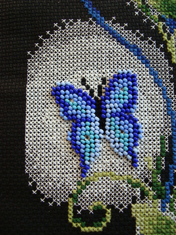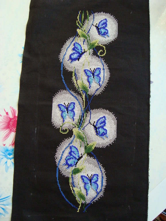 По совету одной вышивальщицы дошила обрезанные части, что меня очень обрадовало, потому что меня все время смущала эта обрезанность и соответственно узость вышивки, а теперь работа будет пошире и, по-моему, посимпатичней