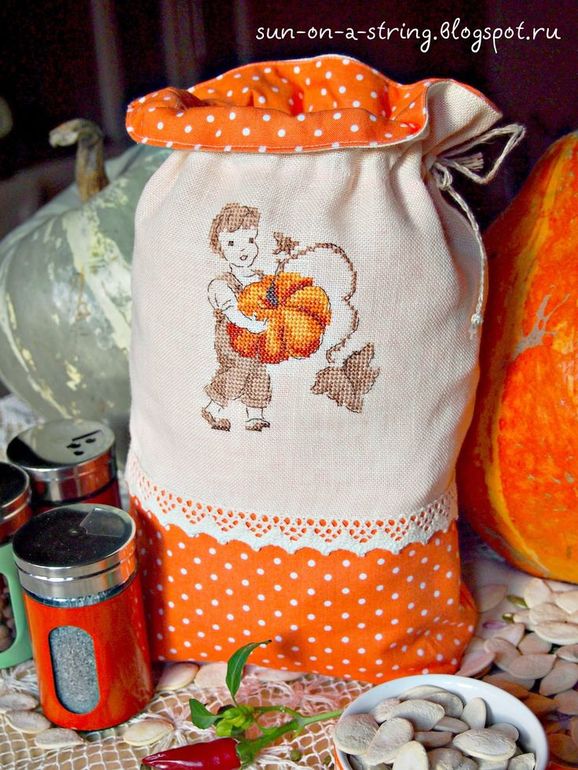 Если хозяйка кухни рукодельница, то это огромный фронт-работы)) Ведь столько всего надо: прихваточки и полотенечки, скатерти и подушки на стулья-табуретки, картины аппетитные, а кто то и на шторы нацелился...А мешочки- как они нам нужны...ведь на кухне столько всего можно в них положить)))