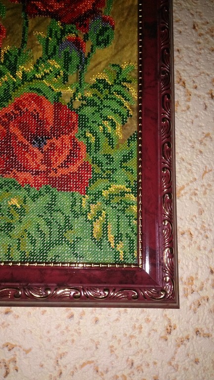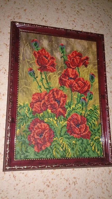 Вышивка бисеромВот и наконец оформились мои маки))) Если бы старший сынуля не разбил раму мой сказочный лес наверное так и лежали бы. Вышились ещё в конце 2014 года. Фото как всегда с телефона, да и к тому же они уже заняли своё место))) Поэтому вот так: