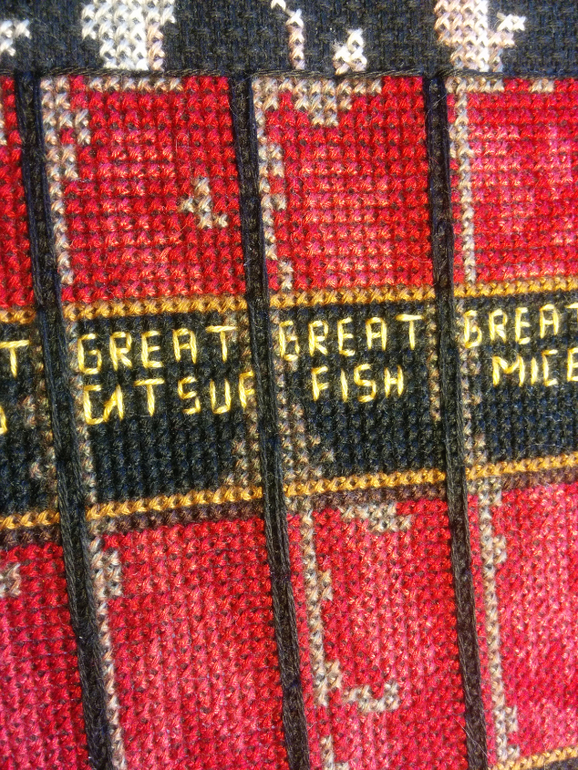 Мне кажется,длинноваты стежки,после стирки/отпаривания канва сядет и стежки могут провиснуть. Я обычно делаю через 2-3 клетки. А усы у кота лучше смотрелись бы выкладной нитью,тогда они не казались бы пунктирными))