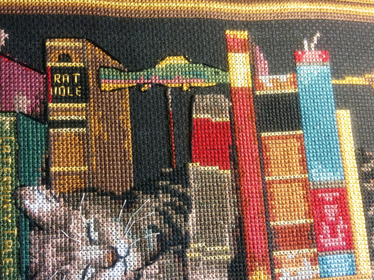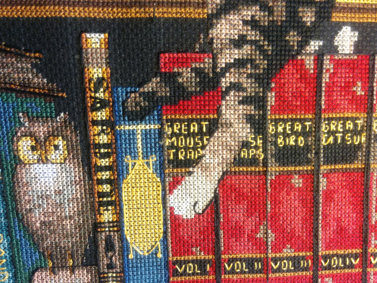 я такого кота вышивала, только про толщину скажу — начала в 3 нити вышивать — очень грубо получается. В основном в 2 вышивала, и то мне кажется, можно в 1. Сову, птиц в одну вышила.