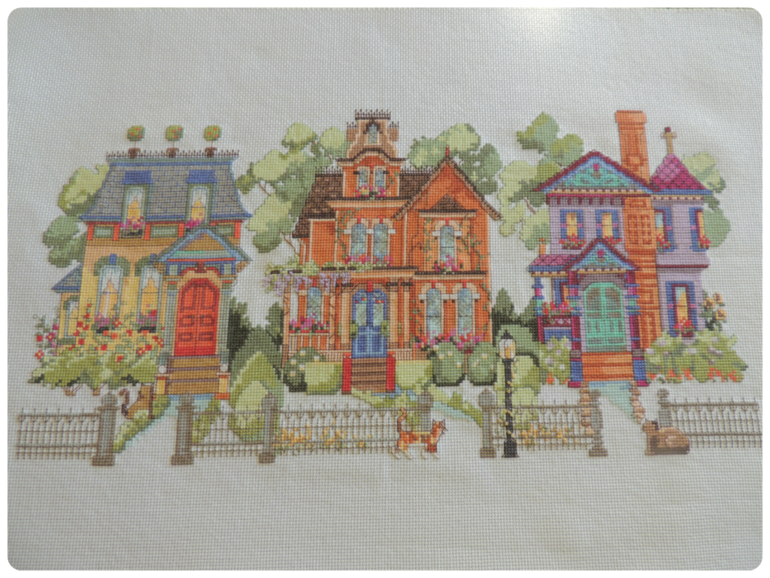 С одной стороны - домики и кошки - это "моя" тема и, после Викторианского шарма я прямо-таки затосковала по дизайнам с аналогичной тематикой. Отшив Алмазной улицы впервые увидела на ББ и загорелась... Набор снят с производства, но мир (читай ББ) не без добрых людей - подсказали где искать.