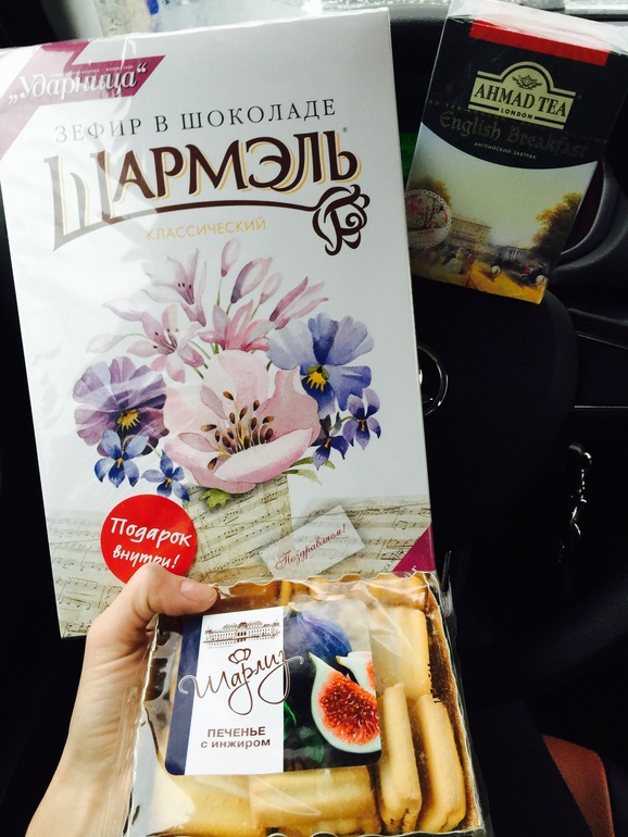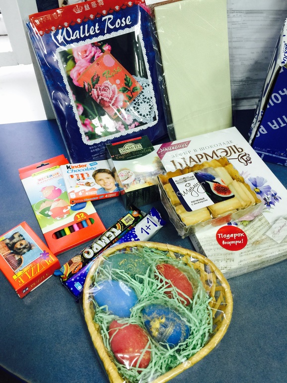 Куча сладостей доя меня,и для ребенка ( сын свои сразу забрал), чай, пазлы Климу, карандаши, шоколадки