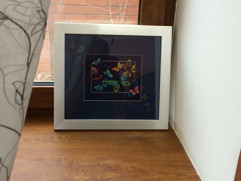 Отличная работа!!! Сама подумываю подобных бабочек вышить, уж очень они мне нравятся))) а на черном фоне , вообще красотища!!!! и оформление классное!!! теперь точно вышью, только найти надо что-то оригинальное)))