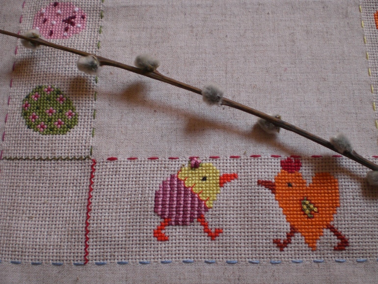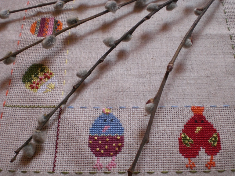 Вышивка крестомКупила уже готовую льняную салфетку с канвой под вышивку еще год назад . Решила , ну чего она лежит без дела , сотворю ка я что-то на тему Пасхи )))) Сотворила ))))))
