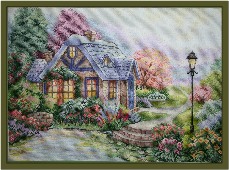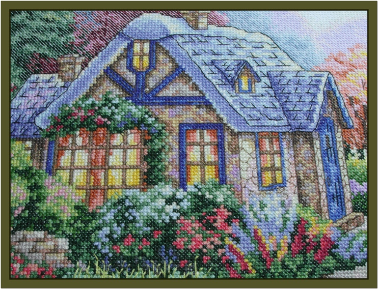 В этот домик от РТО с таким теплым светом из окошек я влюбилась с первого взгляда. Вышивала в общей сложности месяцев 8 и в основном по выходным. С началом работы над домиком я поняла, что вышивкой я заболела навсегда (забросила свои любимые спицы -вот как я заболела).