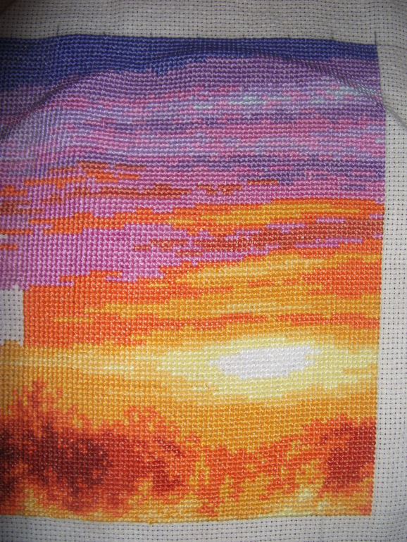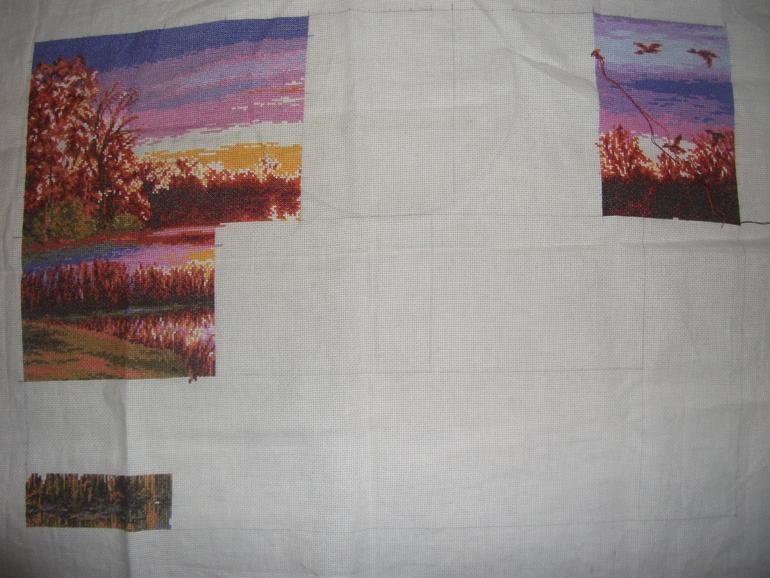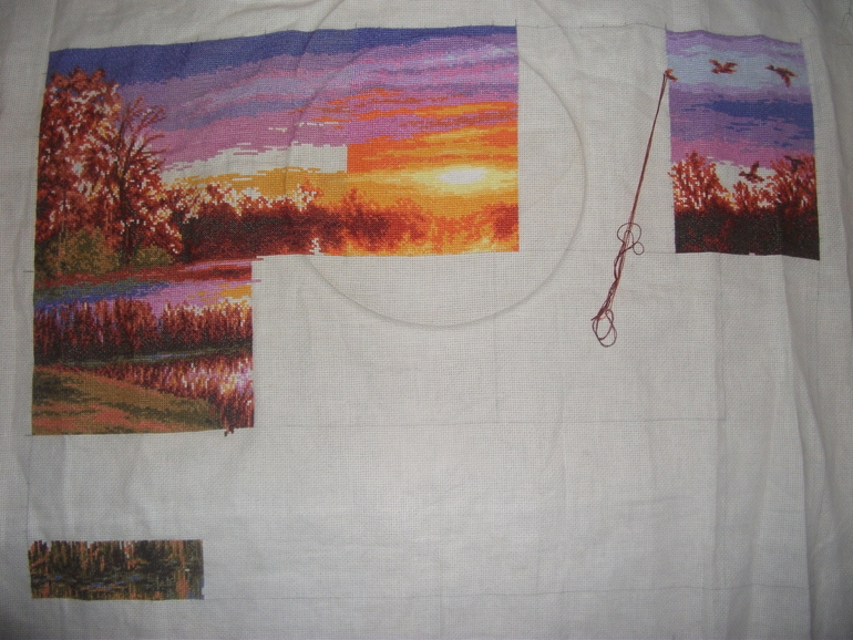 Когда начала отшивать свой кусок, поняла, что не хватает двух оттенков мулине (не зашитые места на соседних участках).