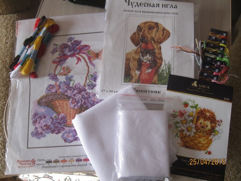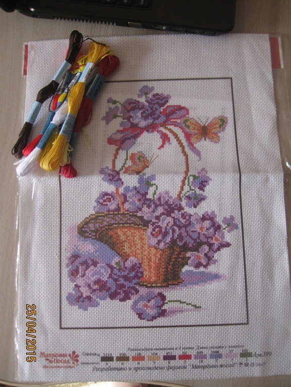 1. Канва с нанесенным рисунком от Матренин посад + ниточки мулине фирмы "Гамма" к ней.