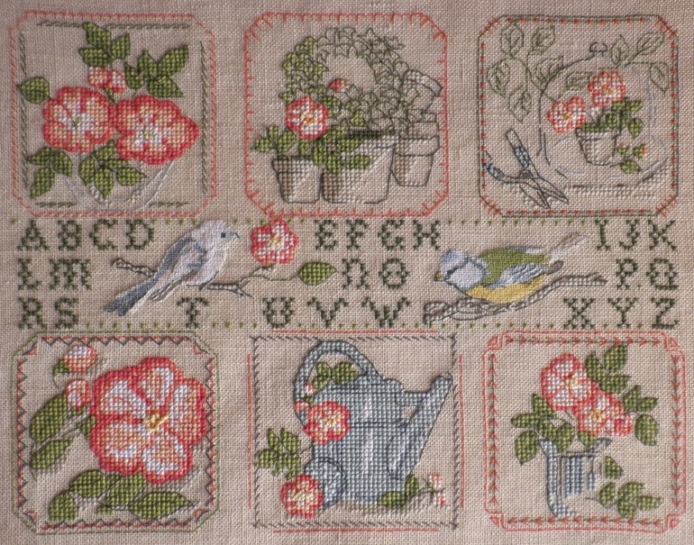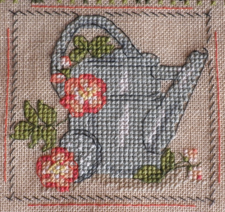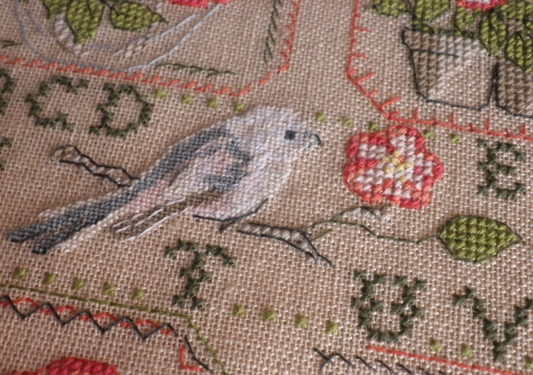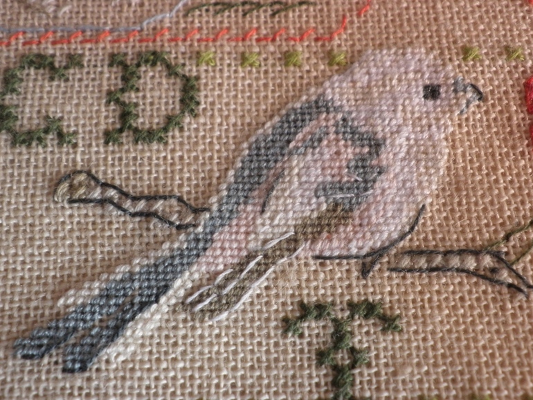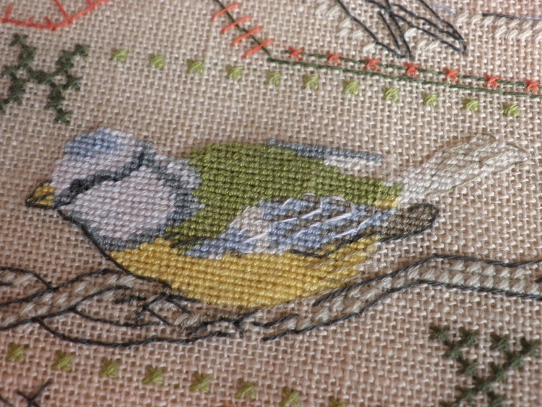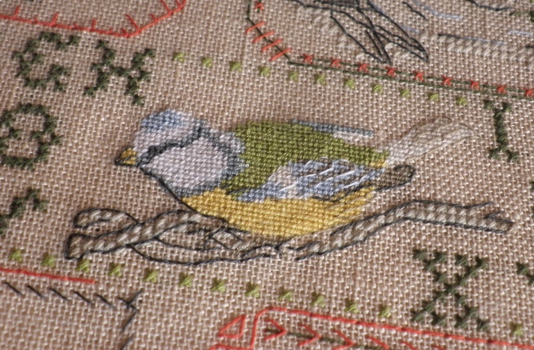 Пожалуй,птички достойны того,чтобы на них остановиться поподробнее)) По задумке дизайнера они должны быть вышиты микрокрестом в 1 нить 1*1 (т.е. через одну ниточку канвы),но то,что получалось мне совершенно не понравилось,возможно потому,что лён имеет довольно рыхлую структуру. И я опять посвоевольничала и вышила из микрополукрестом в 2 нити через 1 нить канвы.