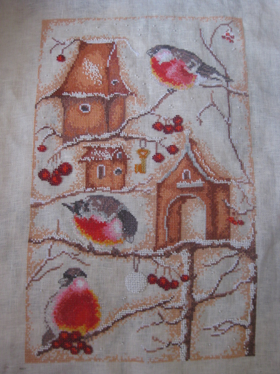 снегири-такие милые пухлячки,а скворешника-словно пряничные домики...очень красиво!!!поздравляюс окончанием!