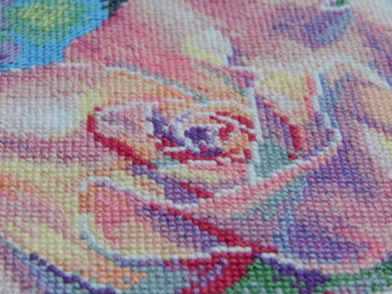 О наборе... Канва нормальная, но нитки - это жесть! Я уже сталкивалась с Bestex, но не в таком количестве (22 цвета + 9 блэндов). Путаются, мохрятся, а еще они все разной толщины.