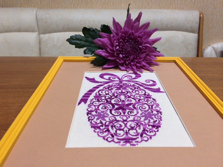 И когда я стала понимать что их не хватает, это был капец. Вроде яйцо мне казалось не большим, но.... Заказывать не вариант до конкурса оставалась неделя, во вторых жаба давит, в третьих бирку потеряла не могла вспомнить ни название ни тон соответственно. Ну да ладно, купила в своем магазине мадейру начала вышивать, до этого перепробовав и распустив не один вариант своих домашних ниток. В итоге случайно поехали в Сургут купила в Леонардо анкор, всё распустила переделала (мадейра продаётся в пакетике и в магазине темно было, не угадала с оттенком) - довольна!