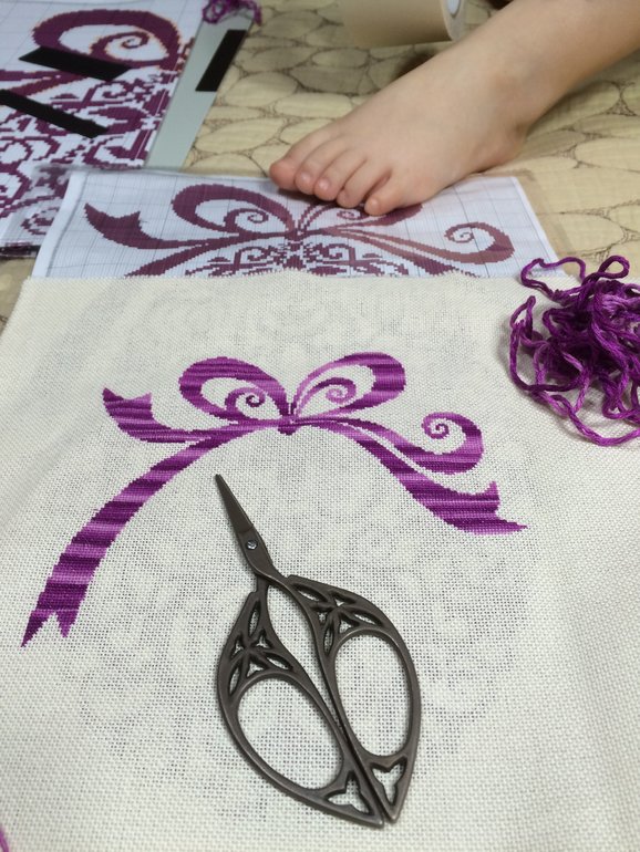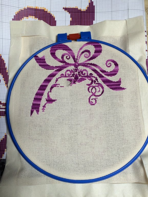 А да, вышивала в 32 каунте, цвет кремовый вроде, через одну ниточку, дабы уменьшить размер так что вышивка называется "вырви глаз"... Ещё надо сказать что ниточки и сама схема это песня!