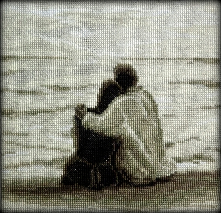Вышивка крестом...до сих пор, хотя на море были последний раз три года назад и еще в той, прошлой жизни. Волшебный Тарханкут...Западное побережье, малоинтересное для изощренного туриста,но абсолютно мое по настроению. Место, где Крымский обрывистый берег сливается с такой же степью, как возле родных терриконов. Меня не зацепит ничего вокруг, даже если бы сам Будда в огбтягивающих штанишках захотел вдруг угостить меня ванильным пломбиром, если рядом есть море. Мне из-за этого всю жизнь приходится искать свой потерянный русалочий хвост...Но сейчас не об этом,а о... Ой! Забыла! А, ну да, я ж еще и крестиком могу. Задумывалась эта работа в подарок любимому на очередную годовщину первых постиранных носков штампа в паспорте. И как это обычно бывает, все пошло наперекосяк...