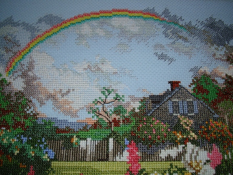 Закончила я долгострой, набор "Радуга" от РТО, начала вышивать его летом 2014 года на даче и приехав домой отложила в дальний ящик. И вот благодаря ВД он готов. Сам наборчик выиграла в нашем сообществе, в игре "От хомячка хомячку". Набор укомплектован ниточками ДМС 37 цветов, 12 блендов, крест в 1 и 2 нити, полукрест в 1 нить, бэк, фр.узелки.