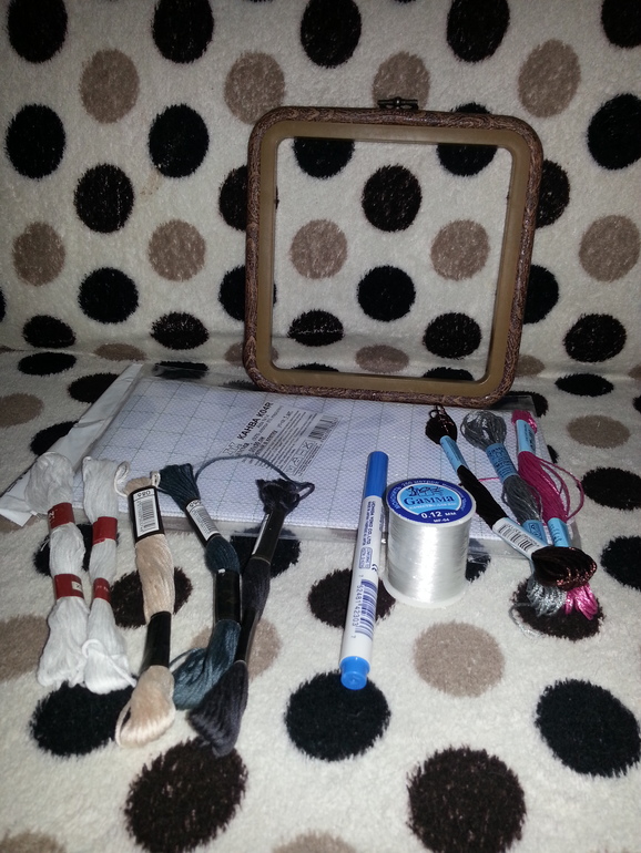 И много ниточек,маркер,мононить и рамка-пяльца(давно хотела такие) и канва..