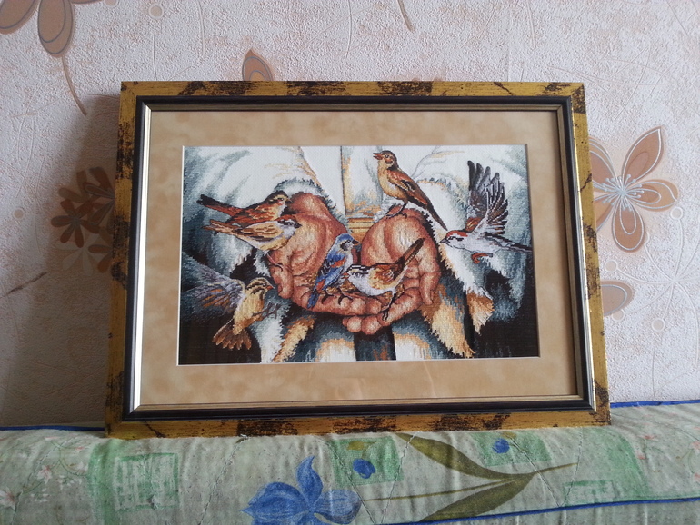 Очень красиво!подскажите,пожалуйста фирму и название вышивки,где птицы и руки)))