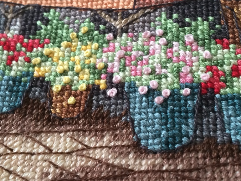 Влюбилась в эту вышивку с первого взгляда, такая она сочная, яркая и манящая. Но когда дошла до большой нижней клумбы, у меня начал дергаться глаз))) и работу я забросила) Если честно, даже не помню, в каком году начинала, но перерыв был года на 3 точно. Оперативно закончить помог станок для вышивания, не представляю, как я раньше вышивала без него! Помучилась немного с бэком... Но самым ужасом оказался не он,а фрузелки в 3 нити.. Я решила, что это чья-то злая шутка и делала их в 2 нити, но не в 1 оборот вокруг иглы, а в 2)) процесс пошел гораздо быстрое и веселее, и фрузи получились вполне себе пухленькие и милые) в общем теперь нужно до понедельника успеть сдать в багетку! В пн у меня ПКС! Вышивальщицы из Ростова, помогите, подскажите! Немного фото подробностей: